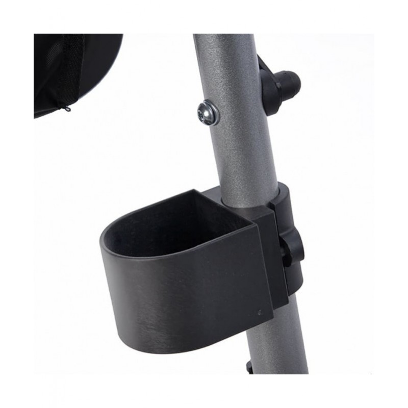 Incorpora un cómodo asiento de 35 cm de ancho y 34 cm de profundidad bajo el cual se sitúa una cesta metálica y una barra acolchada de apoyo para la espalda. Trae el porta bastón de serie.