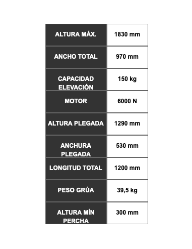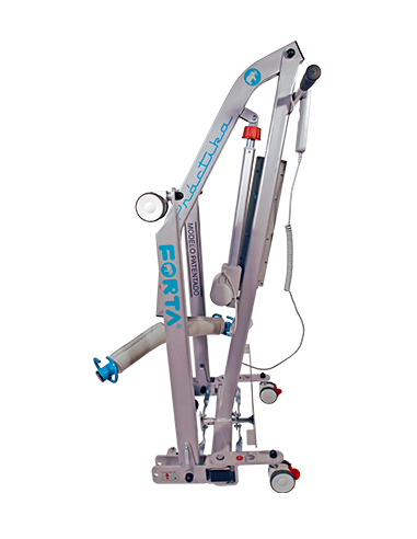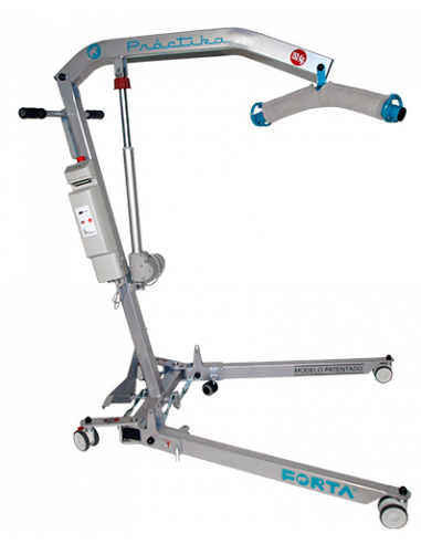La grúa de elevación Práctika de Forta es única en el mercado gracias a varias características como son su plegado y su sistema de apertura de patas, patentado. El sistema de plegado de esta grúa le permite ser plegada y desplegada sin problema por una sola persona, sin necesidad de usar ningún tipo de herramientas.